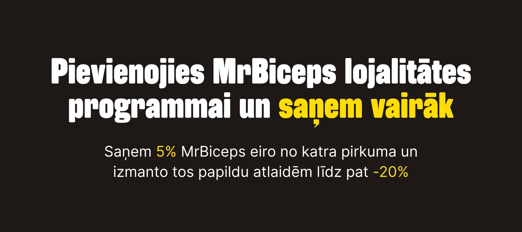 Saņem 5% no pirkuma summas MrBiceps eiro. 1 MrBiceps eiro = 1 € |